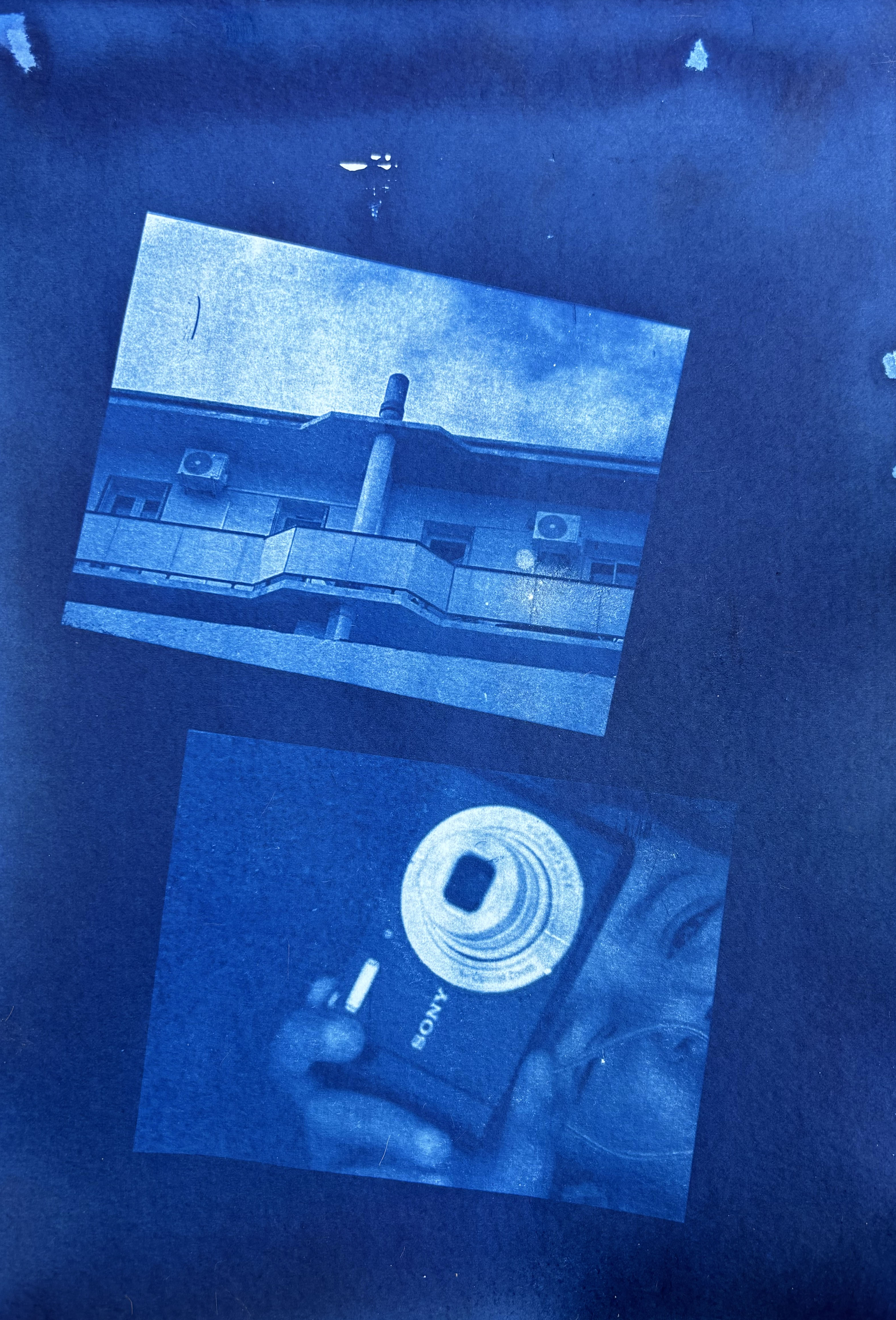 Equipés de petits appareils numériques, les enfants ont également réalisé une multitudes de photographies au sein du centre qui témoignent de leur curiosité et de la richesse de leurs regards. Une sélection de ces images a été utilisée pour réaliser des cyanotypes.