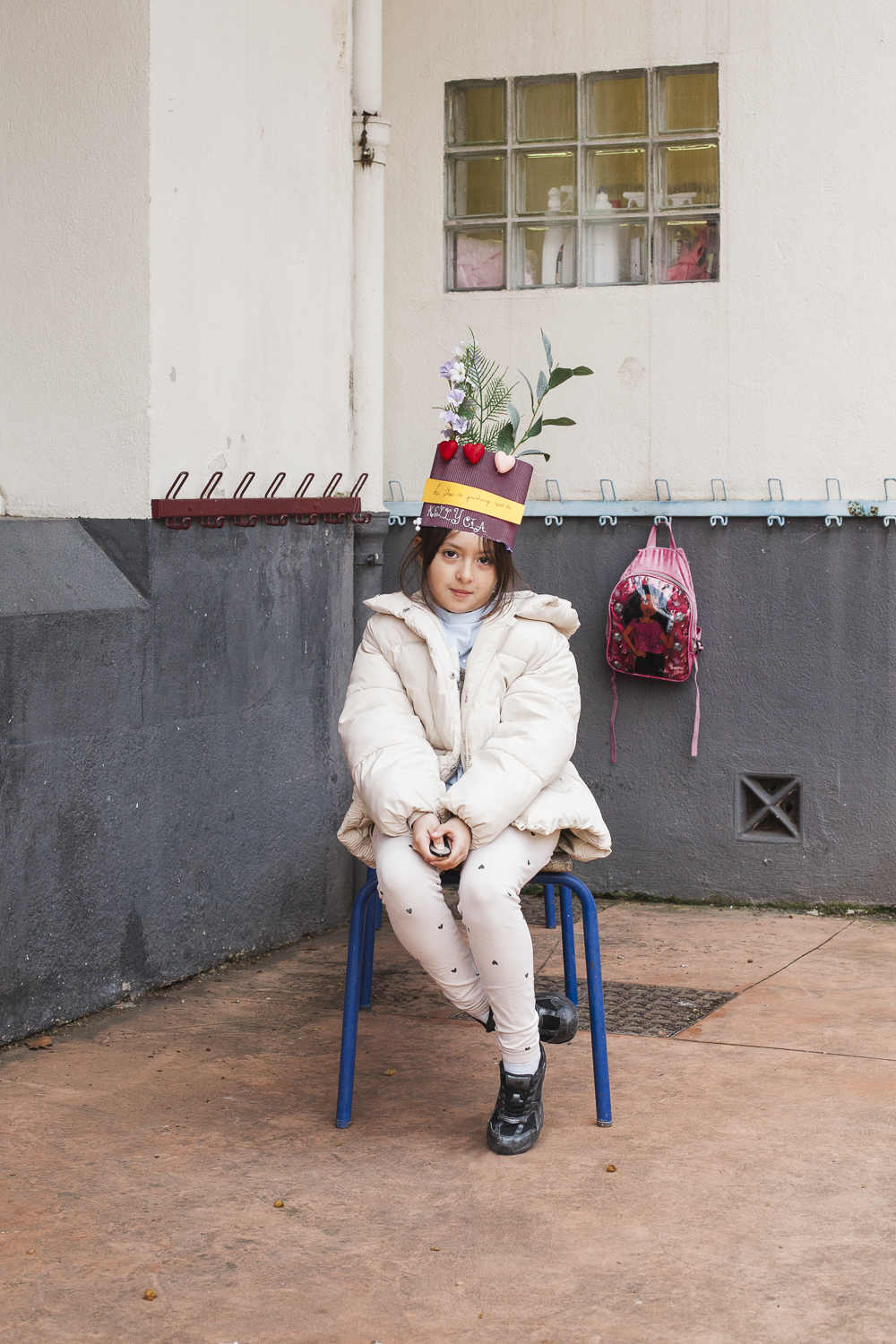 Durant les ateliers qui ont eu lieu de février à mai nous avons exploré les notions d’identité et de représentativité de façon ludique et créative. En utilisant le médium photographique, mais aussi par le biais de discussions, de l’écriture, du dessin et de travaux manuels, les enfants ont pu se questionner et s’exprimer sur leurs goûts, leurs centre d’interêts, sur ce qu’ils apprécient et ce qui leur déplaît. Issues de ces réflexions, les couronnes de têtes qu’iels ont chacun·es fabriquées puis portées, sont l’expression de leur singularité et de leur pouvoir d’imaginer. Nous avons ensuite réalisé des autoportraits couronnés, où chaque enfant a pu choisir le lieu de sa mise en scène avant d’appuyer sur la télécommande pour se prendre en photo.